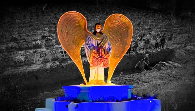 Memorial para vítimas da Covid-19 em Manaus tem anjo com máscara e pulmões nas mãos