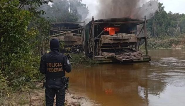 Polícia Federal e Ibama destroem 26 dragas usadas no garimpo ilegal no Amazonas