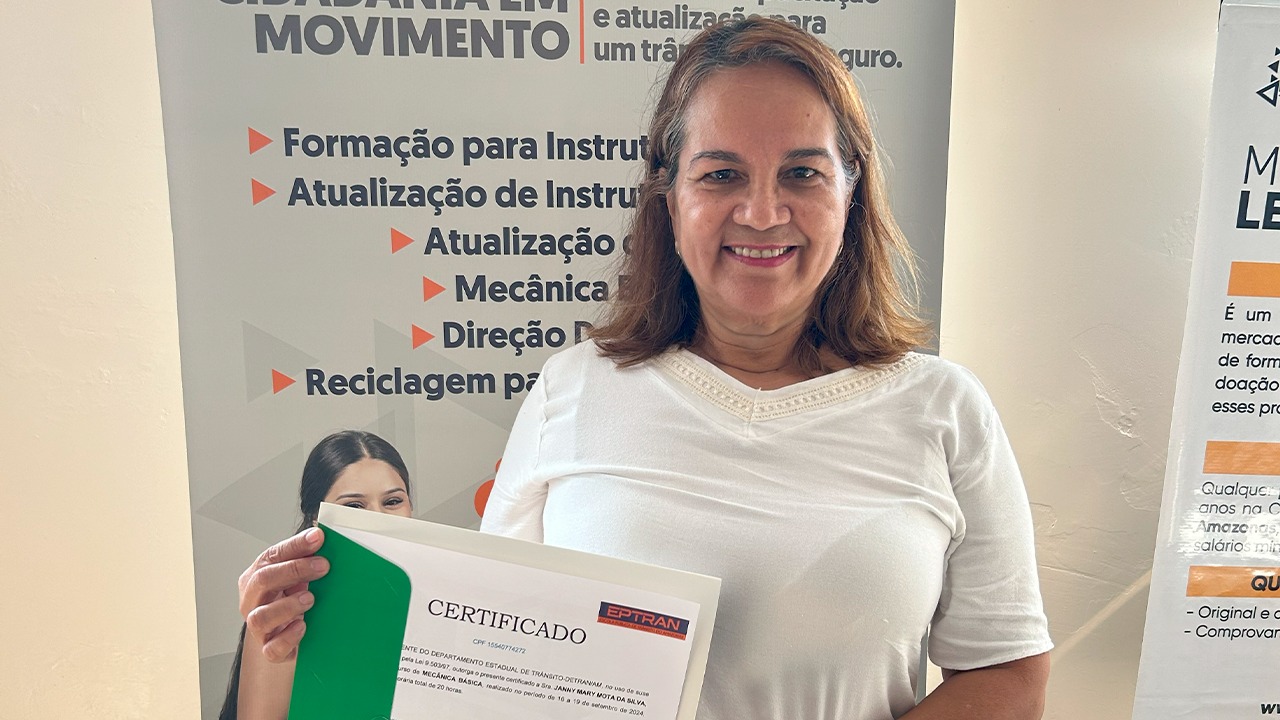 Janny Mary Mota da Silva, 61 anos, Servidora Pública, foi uma das certificadas pelo curso de Mecânica Básica e salienta que é muito importante realizar a capacitação, independentemente da idade, para compreender melhor um veículo e o seu funcionamento, como medida de segurança aos condutores do estado.