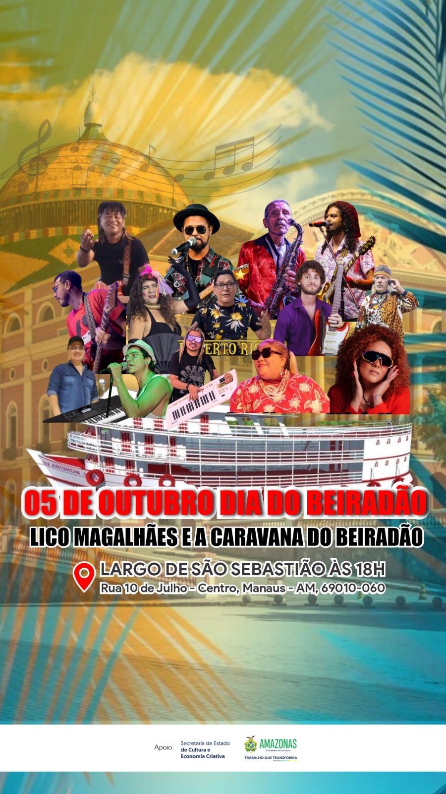 "Mais do que um espetáculo musical, o Dia do Beiradão é a afirmação do nosso pertencimento cultural. É um verdadeiro encontro de gerações que promete transformar o Largo em um grande palco da música popular amazonense", afirmou Lico Magalhães.
