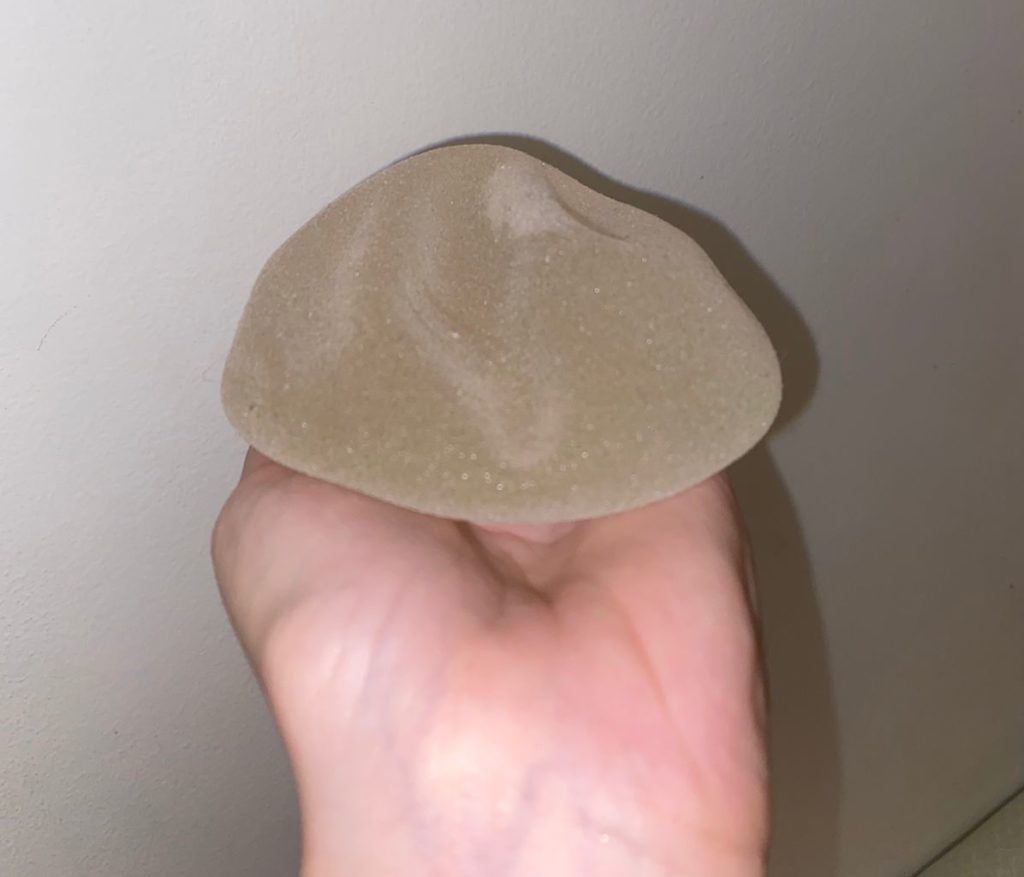 “Minha prótese estava murcha e com bolhas de ar dentro quando eu tirei. Esse gel estava vazando no meu corpo e me intoxicando.”