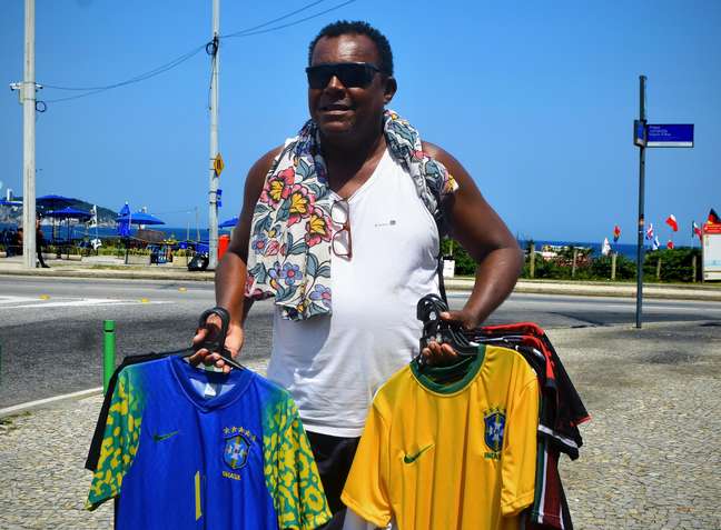 Quem vende as camisas é o camelô Cláudio, que trabalha há 35 anos como vendedor na zona sul do Rio de Janeiro e é de São João de Meriti, município localizado na Baixada Fluminense. Para ele, não apenas a Barra da Tijuca, mas todo o Rio de Janeiro "está fechado com Bolsonaro" nessas eleições.