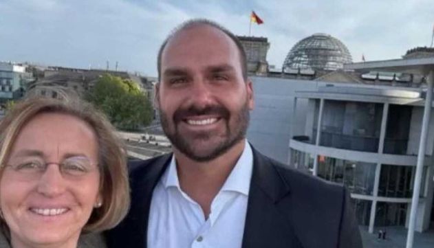 O deputado federal Eduardo Bolsonaro (PL-SP) publicou, uma foto ao lado da deputada alemã de extrema-direita Beatrix von Storch, neta do ministro de Finanças do Adolf Hitler e vice-líder do partido Alternativa para a Alemanha, sigla acusada de difundir ideias neonazistas.
