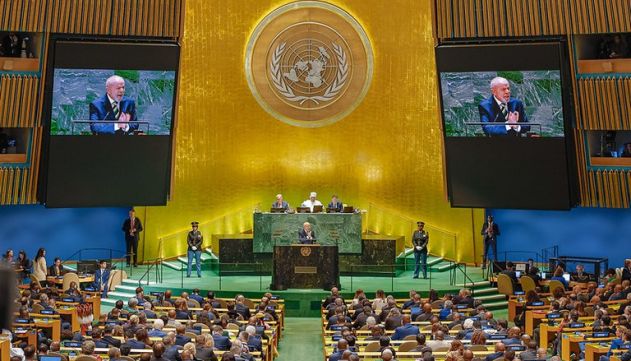 "O Brasil mantém firme sua posição histórica: a ONU deve estar sempre no centro da governança global. A organização passa por uma crise de confiança, que precisa ser restabelecida", declarou Lula. "O Brasil considera apresentar proposta de convocação de uma conferência de revisão da Carta das Nações Unidas com base em seu artigo nº 109", acrescentou ainda o brasileiro.