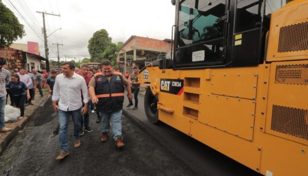Acompanhado do secretário municipal de Infraestrutura, Renato Júnior, David Almeida visita obras em bairro de Manaus