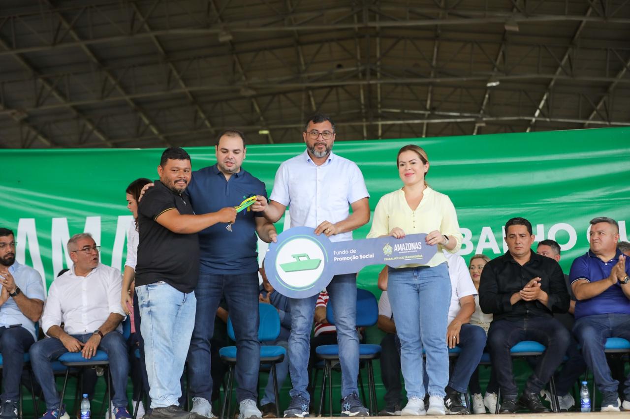 O governador também entregou a chave de uma lancha e um motor 150HP à Associação dos Pescadores e Pescadoras Profissionais e Artesanais do Município de Borba (Asspro), que atua no manejo de peixes. O veículo, fruto de R$ 162 mil via edital do Fundo de Promoção Social e Erradicação da Pobreza (FPS), deve beneficiar diretamente 60 famílias de agricultores e agroextrativistas durante o processo de escoamento da produção.