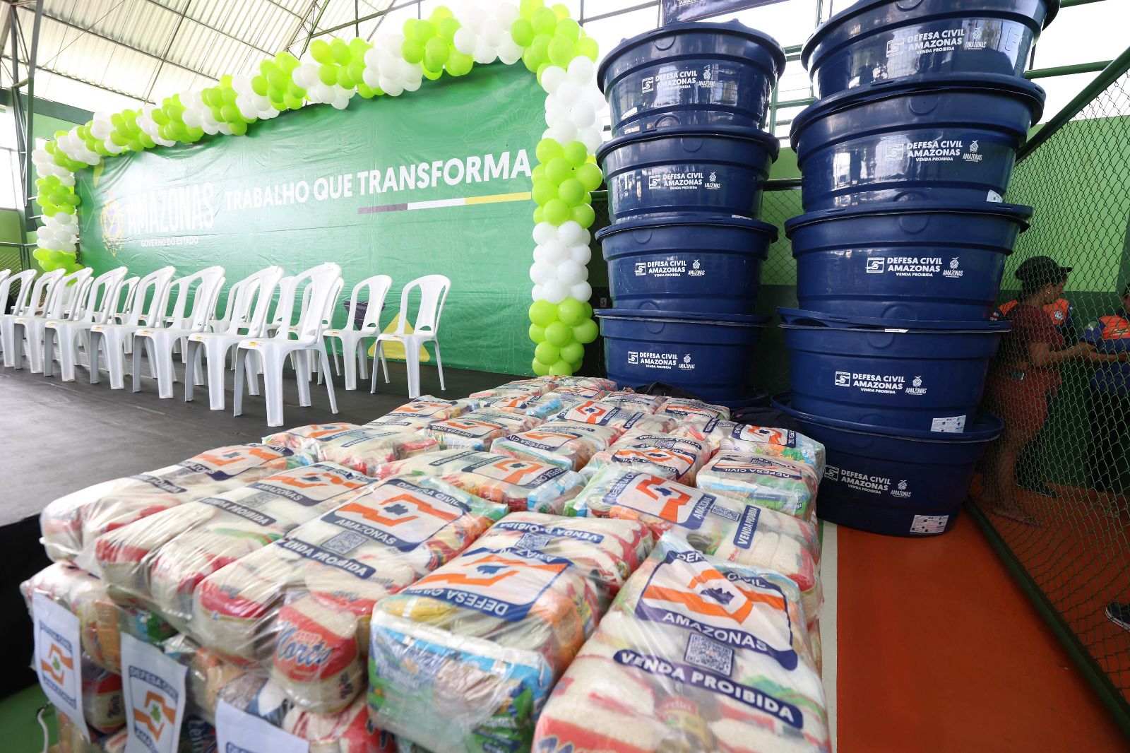 Durante a agenda em Canutama, o governador Wilson Lima também realizou a entrega de 30 toneladas de alimentos em 1.500 cestas básicas e 100 caixas d’água para famílias atingidas pela estiagem no município. A iniciativa integra a Operação Estiagem 2025, coordenada pela Defesa Civil do Estado, e marca a primeira ação em resposta à seca deste ano, beneficiando diretamente cerca de 1.500 famílias afetadas pela redução do nível dos rios. Desta forma, o Governo do Amazonas, por meio da Defesa Civil, se antecipa para garantir que a população receba apoio humanitário antes do período mais crítico da seca. A ação visa mitigar os efeitos da estiagem, garantindo condições mínimas de segurança alimentar e acesso à água potável.