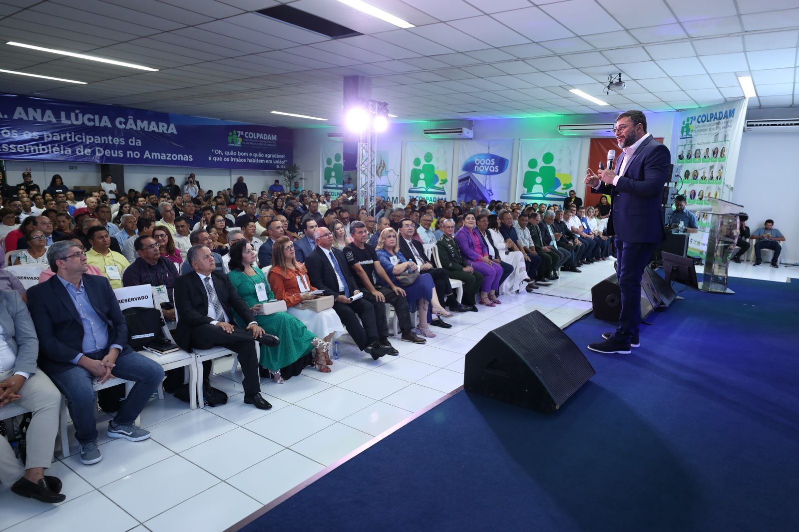 O governador Wilson Lima destacou, na sexta-feira,07/06, programas e ações que o Governo do Amazonas têm realizado, principalmente na área social e em busca de novas matrizes econômicas do estado. O governador esteve reunido com 600 pessoas, aproximadamente, da capital e do interior durante a 7ª Conferência de Liderança Política da Assembleia de Deus no Amazonas (Colpadam).