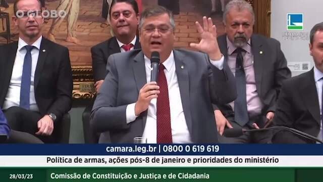 Durante seus menos de cinco minutos de fala contínua, Dino fez breves considerações sobre política de armas e os caminhos das políticas de segurança pública do país.