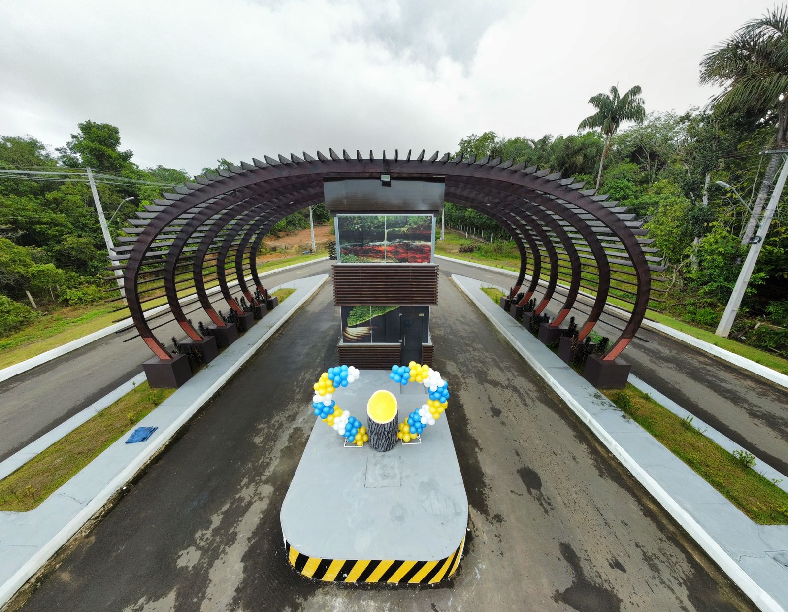 Além do portal, também foi entregue três vias pavimentadas, sendo uma delas destinada ao tráfego de veículos leves, com sentido de mão dupla. No meio dessas vias foram instaladas as salas de controle, recepção de acesso e saída da cidade, e duas vias laterais, para entrada e saída de veículos pesados e de tráfego livre.