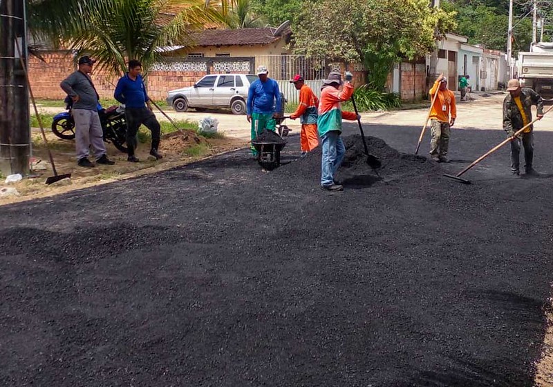 A Prefeitura de Manaus, por meio da Secretaria Municipal de Infraestrutura (Seminf), trabalha, nesta quarta-feira, 4/5, na revitalização da rua Treviso, bairro Nova Cidade, zona Norte. A via, que estava intrafegável, recebe aproximadamente 220 toneladas de massa asfáltica para a recuperação de toda a sua extensão.