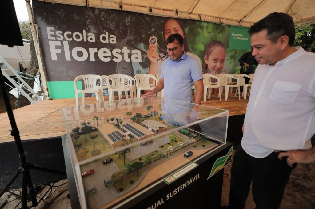O governador Wilson Lima assinou, nesta quinta-feira (16/02), a ordem de serviço para a construção da primeira unidade da Escola da Floresta, que ficará localizada na Reserva de Desenvolvimento Sustentável (RDS) do Uatumã, em São Sebastião do Uatumã (a 247 quilômetros de Manaus).
