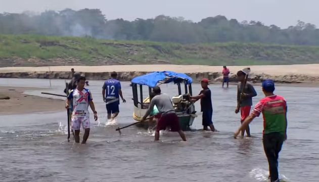 Vídeos que circulam nas redes sociais nesta segunda-feira, 16, mostram embarcações encalhadas no Rio Madeira, em Rondônia. Uma balsa transportando 16 carretas ficou presa no rio, na região de São Carlos, próximo à capital, Porto Velho. Além disso, outra embarcação encalhou em um pedral nas proximidades da comunidade de Marmelo.
