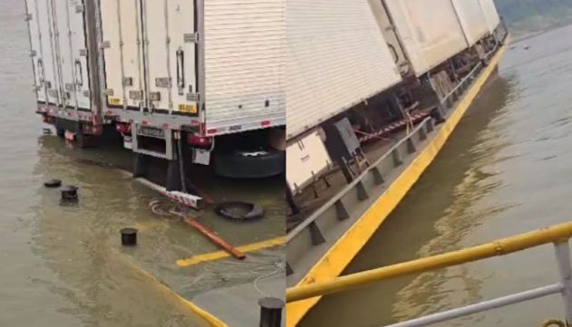 As imagens compartilhadas mostram grandes veículos presos em balsas e algumas embarcações afundando. Em outro vídeo, é possível ver moradores auxiliando na transferência de mercadorias após o encalhe de uma das embarcações.