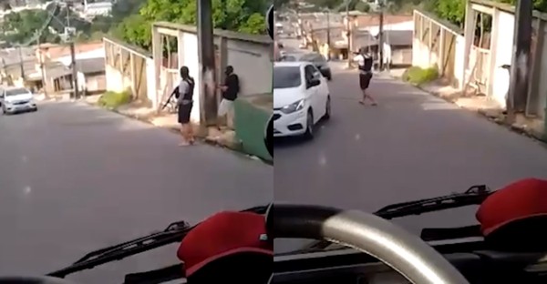 Um vídeo que mostra dois homens encapuzados e fortemente armados em uma rua de Manaus circulou nas redes sociais, no domingo (28), e deixou moradores assustados - assista ao vídeo abaixo.