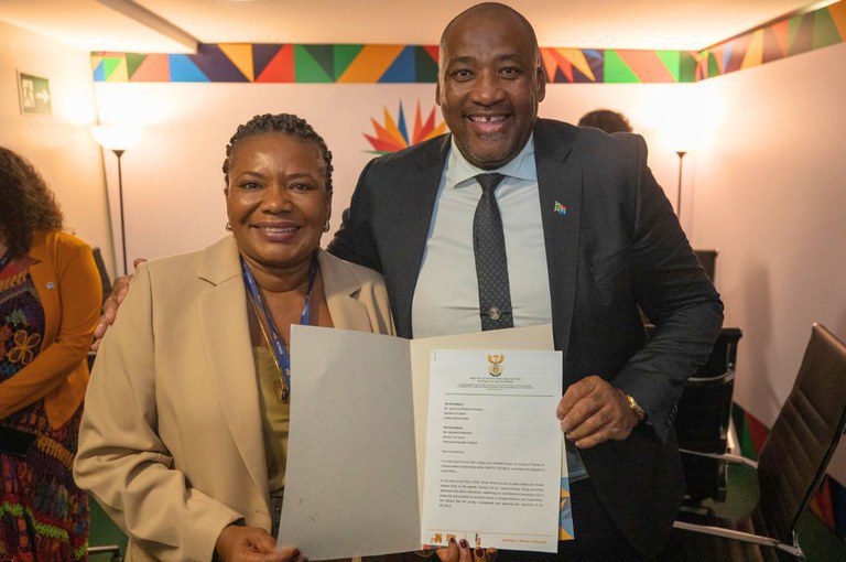 No encontro, ela felicitou seu colega pela presidência do G20 este ano, que levou adiante os temas trabalhados pelo Brasil durante sua presidência, agradecendo a cooperação e a parceria. Entre os principais anúncios do encontro, Gayton Mackenzie entregou à ministra o documento que formaliza a entrada da África do Sul no Grupo de Amigos da Ação Climática Baseada na Cultura (GFCBCA). “É com imensa alegria que anuncio que assinamos os termos de nossa entrada no Grupo. Queremos somar esforços nessa causa comum a todos nós”, disse.