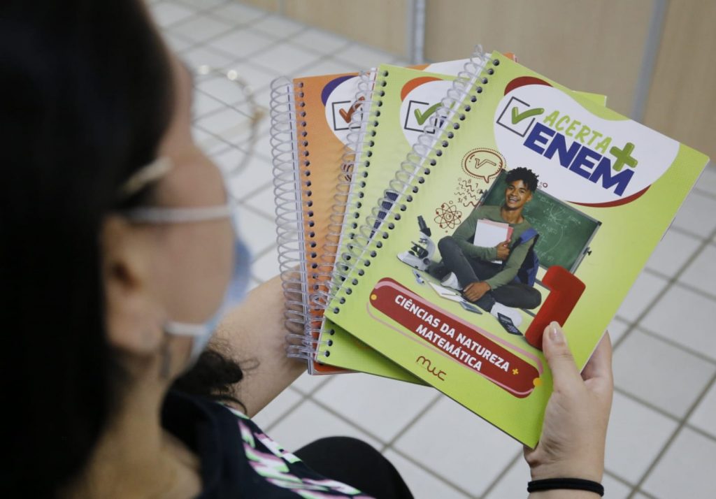 O material é voltado ao auxílio e preparação para a prova nacional, com exercícios e conteúdos especializados. Os livros deram a base de estudo para as estudantes durante a pandemia da Covid-19. Elas também foram assistidas pelos professores e pais na preparação para o Enem, realizado em novembro do ano passado.