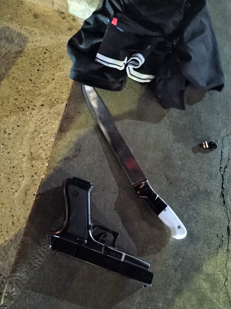 Equipe da Ronda Ostensiva Municipal (ROMU), da Prefeitura de Manaus, realizou, na madrugada desta segunda-feira, 24/6, durante patrulhamento preventivo na Avenida Cosme Ferreira, próximo à feira do Coroado, a detenção de um indivíduo em um ponto de ônibus, de posse de um simulacro de arma de fogo e um facão.