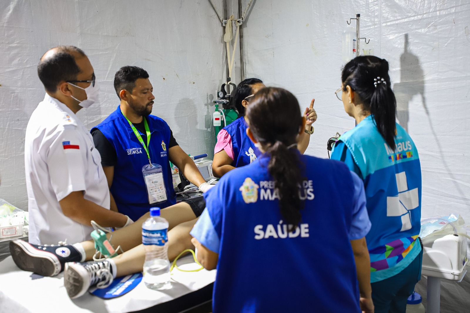 Funcionando desde as 16h de terça-feira, 5/9, a unidade da Secretaria Municipal de Saúde (Semsa), próxima ao palco Guardiões da Amazônia, havia atendido, até as 21h, nove ocorrências leves, sem a necessidade de remoção para unidades hospitalares, ligadas à falta de cuidados com a alimentação e desidratação.