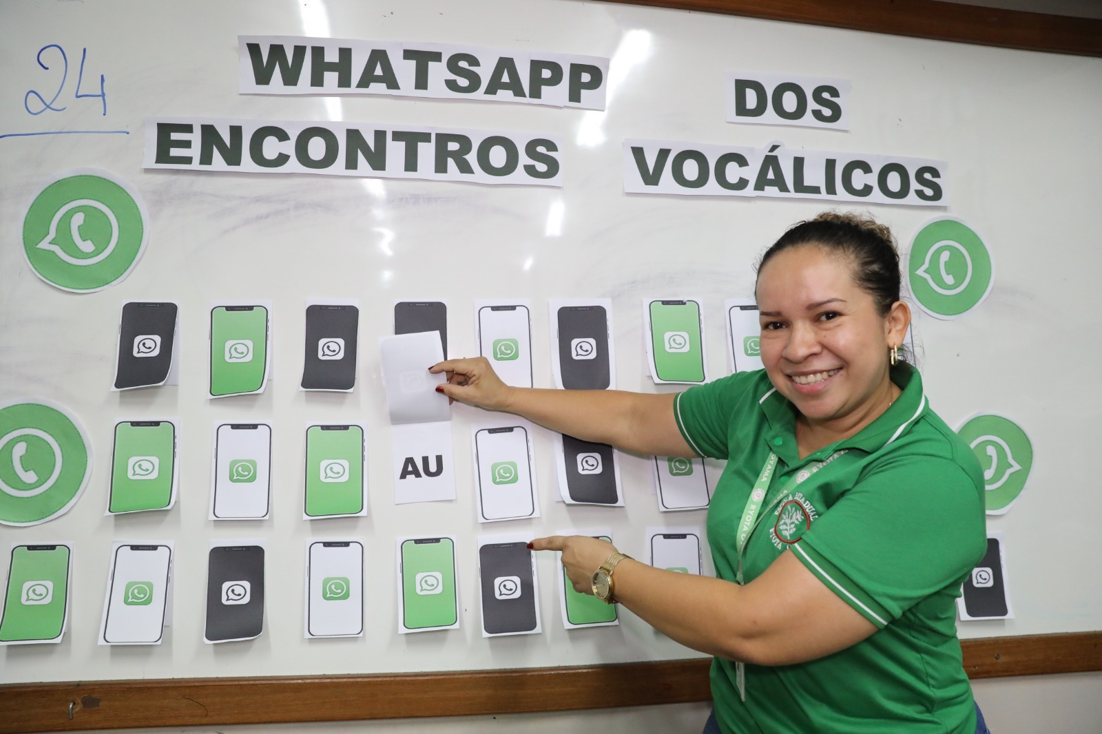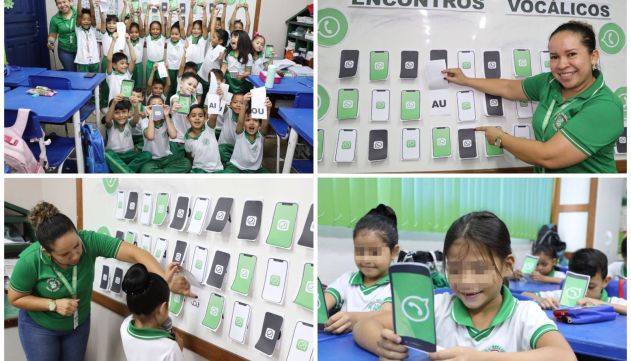 Ao entrar pela primeira vez no ambiente escolar, com a curiosidade aflorada pela idade, muitas crianças se questionam sobre a importância do aprendizado das letras e dos números. Foi a partir da inquietação provocada pela indagação sobre a importância da leitura que a professora Deyse Veiga, da turma do 1º ano do Ensino Fundamental da Escola Estadual (EE) Ryota Oyama, localizada em Parintins (a 369 quilômetros de Manaus), desenvolveu o projeto “Whatsapp dos encontros vocálicos”, voltado para a alfabetização de crianças que estão iniciando a vida escolar.