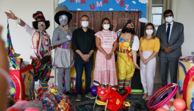 Na sexta-feira (24/09), Marcos Apolo Muniz recebeu a primeira-dama do Estado, Taiana Lima, para entregar a primeira remessa de brinquedos arrecadados na campanha “Doe um Brinquedo e Ganhe Sorrisos”. A ocasião contou com a apresentação dos alunos de clarinete do Liceu de Artes e Ofícios Claudio Santoro e de artistas circenses da Cle Cle Eventos.