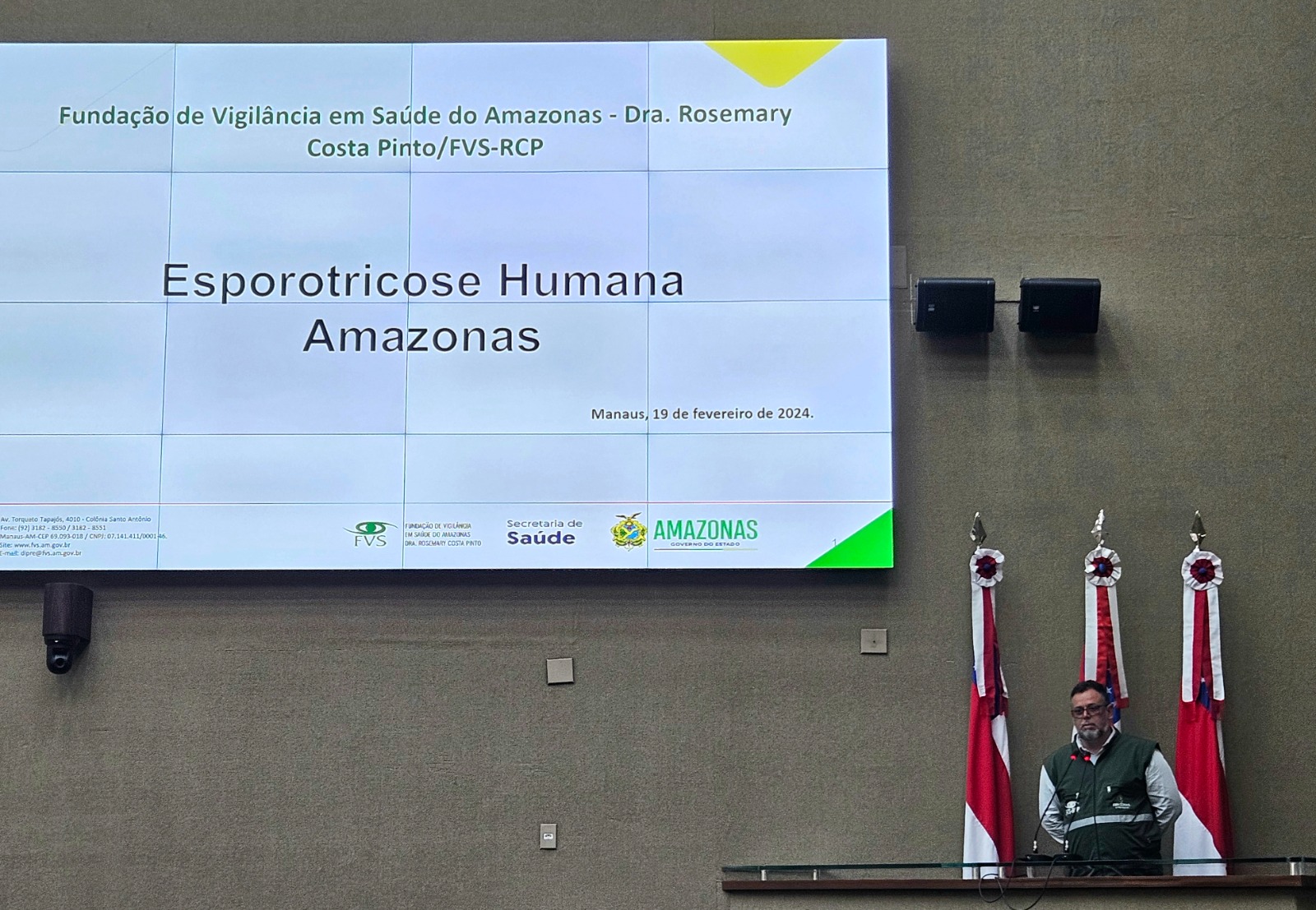 A Secretaria de Estado de Saúde do Amazonas, por meio da Fundação de Vigilância em Saúde do Amazonas – Dra. Rosemary Costa Pinto (FVS-RCP), participou, na segunda-feira, 19/02, da primeira Audiência Pública sobre Esporotricose no Amazonas no Contexto da Saúde Única, no Plenário Ruy Araújo, da Assembleia Legislativa do Amazonas (Aleam), em Manaus.