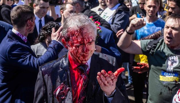 Manifestantes lançam tinta vermelha contra embaixador russo na Polônia. VEJA VÍDEO
