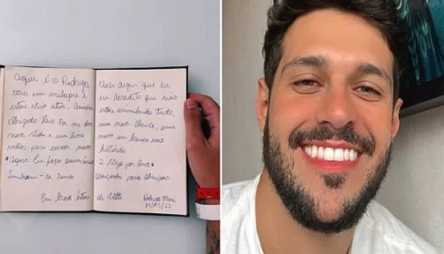 O ex-BBB Rodrigo Mussi, de 36 anos de idade, fez primeira aparição na web após acidente de carro gravíssimo que sofreu no final de março e divulgou uma carta escrita de próprio punho e exibindo sua mão direita.