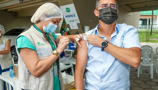 David Almeida compareceu a um posto de vacinação contra a Covid-19 instalado no Centro de Convenções de Manaus