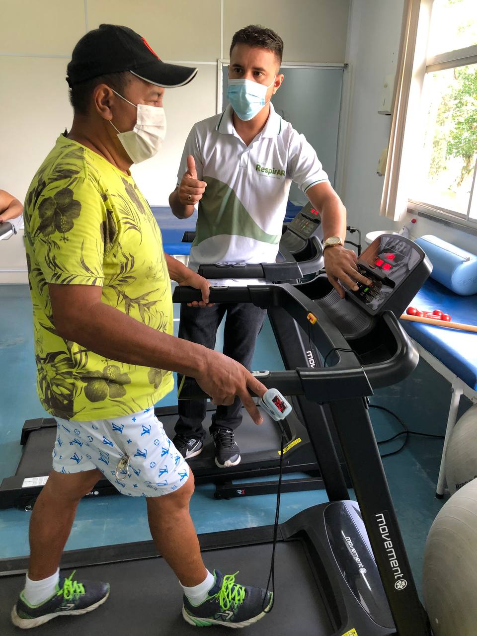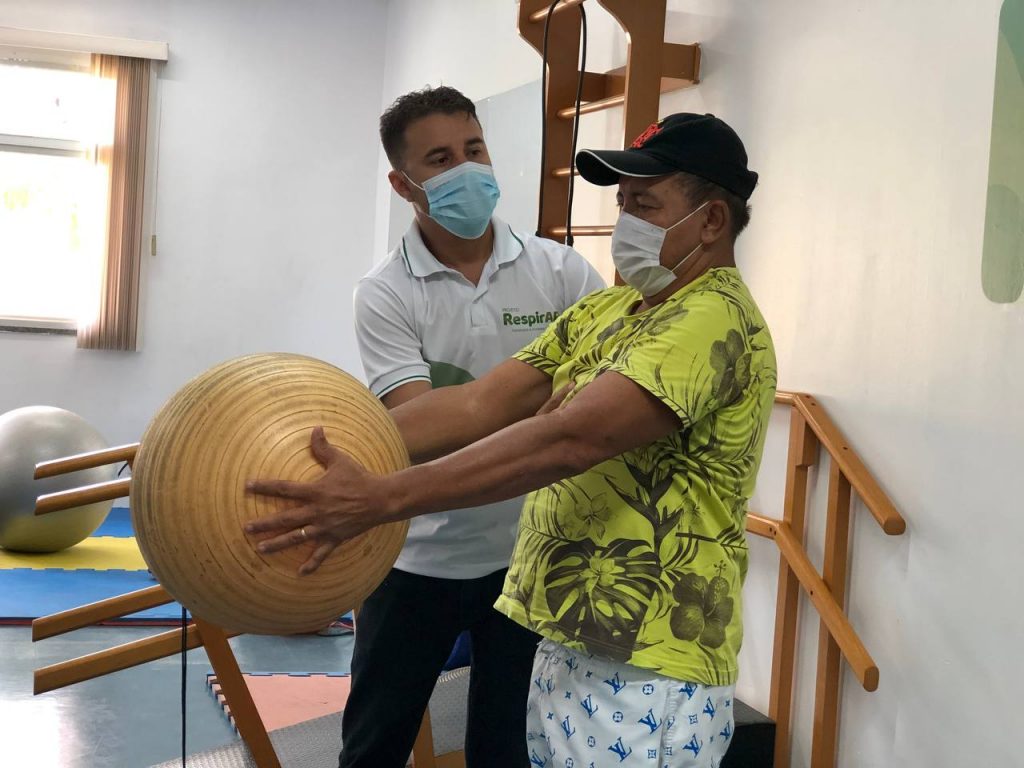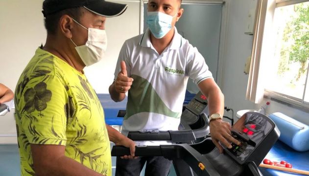 “Em processo de avaliação, seu Josimar está finalizando as sessões de fisioterapia, para começar a segunda fase de reabilitação do RerpirAR, a atividade física orientada. Nessa parte do tratamento vamos trabalhar o fortalecimento de membros superiores e inferiores, além de exercícios de condicionamento físico e respiratório para melhorar a qualidade de vida do paciente”, informou Raí Mendes.