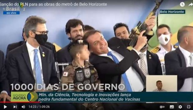 No dia 30 de setembro, o presidente colocou sentado ao seu lado um menino de seis anos fardado e portando a réplica de uma arma durante cerimônia em Belo Horizonte de lançamento da pedra fundamental do Centro Nacional de Vacinas. Chegou a erguer o garoto sobre os ombros e cumprimentou seus pais como exemplo de "civilidade, patriotismo e respeito".