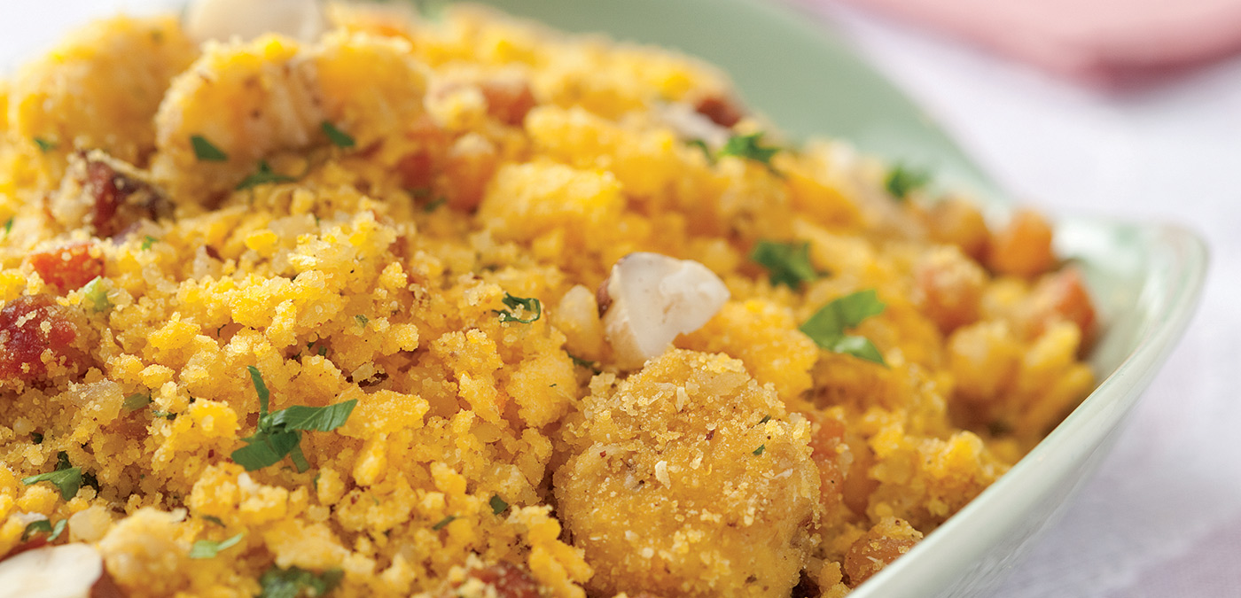 Transfira para uma travessa e sirva a farofa de banana e castanha-do-pará.