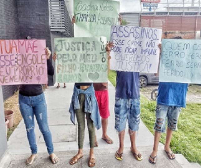A família realizou a manifestação com cartazes pedindo Justiça e que os assassinos sejam mantidos na prisão