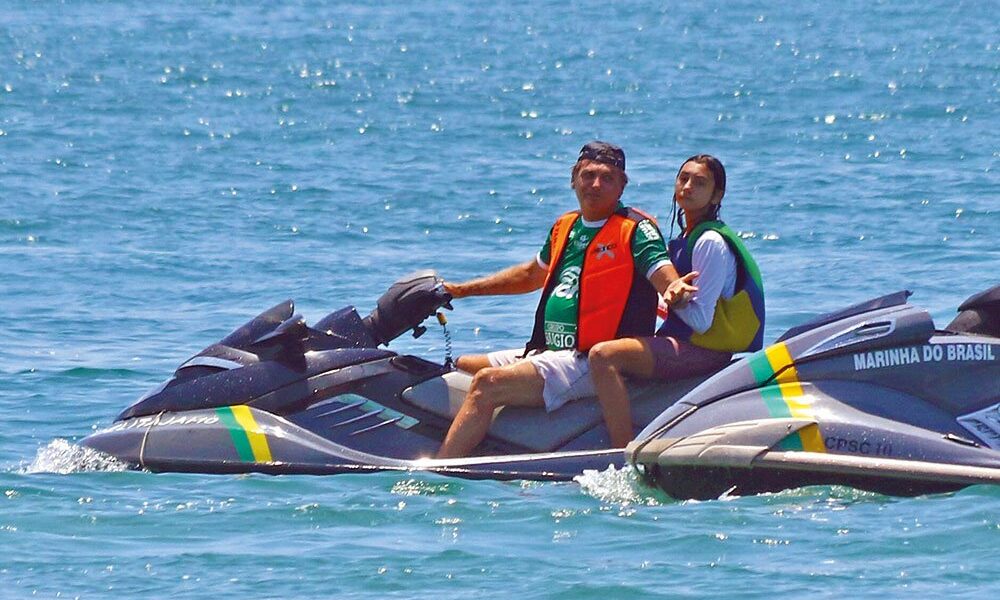 O presidente Jair Bolsonaro fez um passeio de moto aquática em praia de São Francisco do Sul, no dia 2 de janeiro