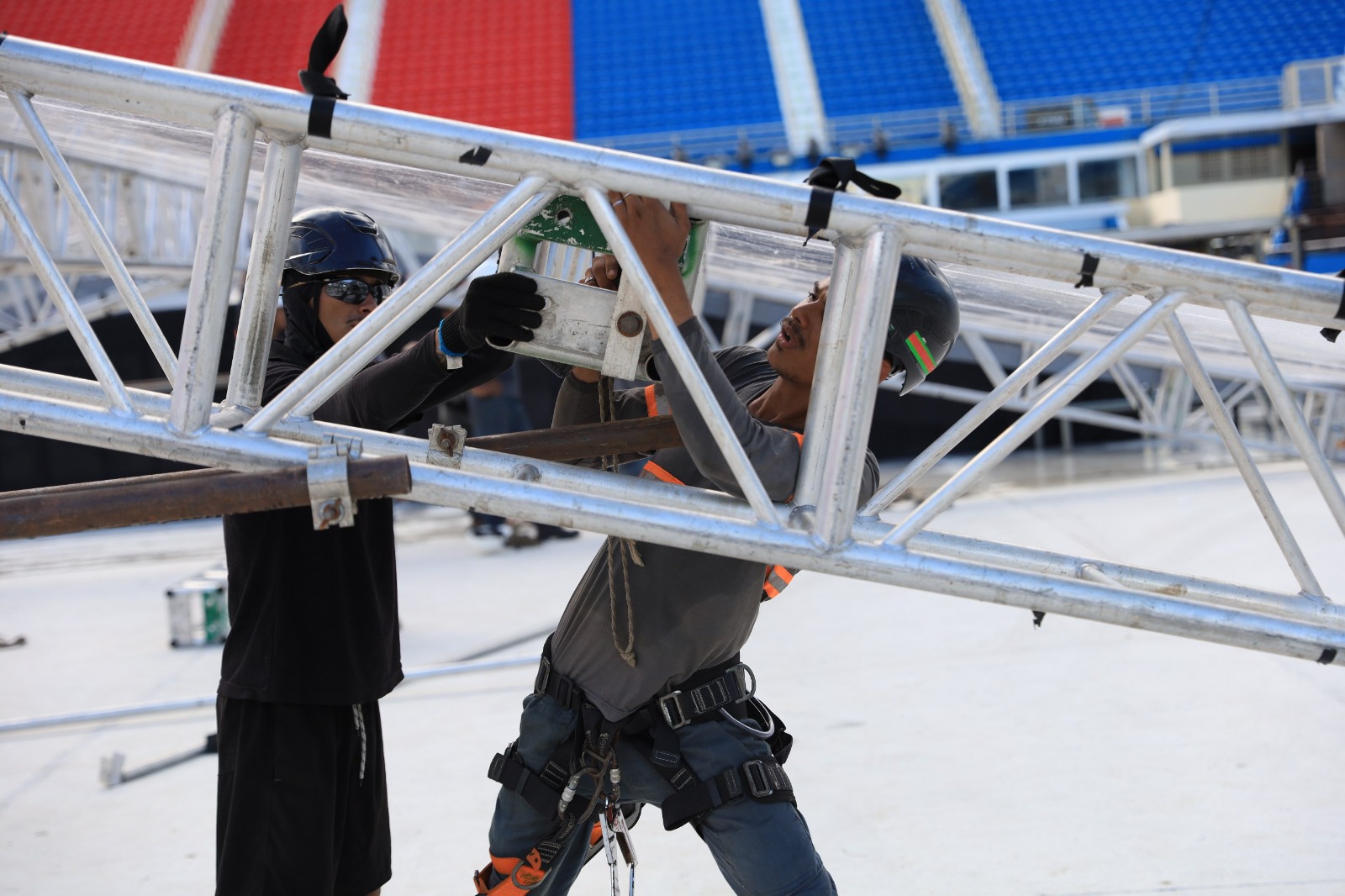 A montagem teve início às 7h, de quarta-feira, 26/06 , e às 17h, do mesmo dia, já estava tudo pronto. O palco 360? tem dimensões de grandes shows: 15 metros por 13 metros, 5 metros de altura, piso de 7,5 metros quadrados, passarela de 20 metros e barricada de contenção.Pelo segundo ano consecutivo, a festa que antecipa as três noites de disputa entre Caprichoso e Garantido, é realizada no Bumbódromo, na mesma arena que abriga os espetáculos dos bumbás.