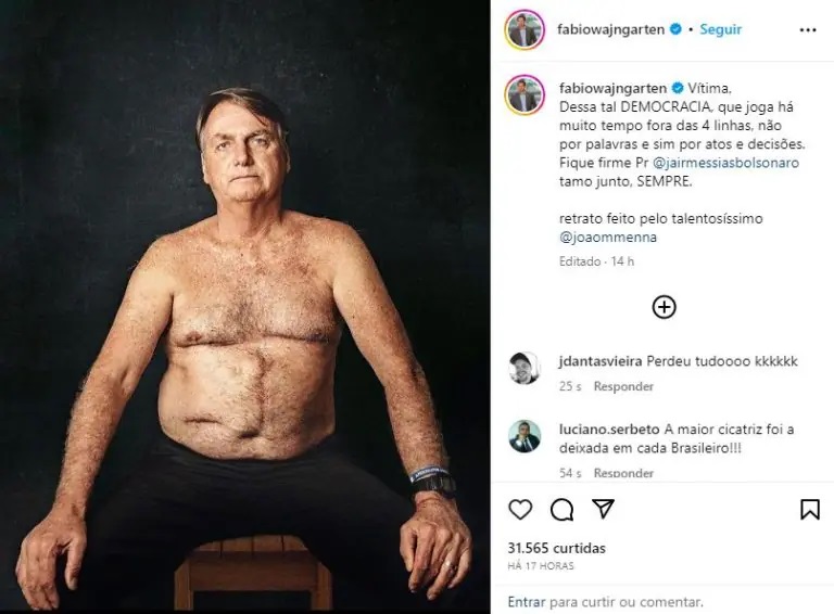 O registro foi publicado pelo advogado Fabio Wajngarten em apoio a Bolsonaro: “vítima dessa tal democracia”.