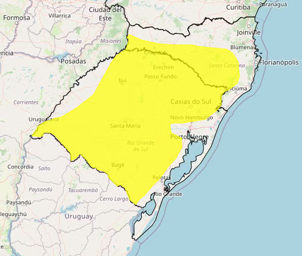 Algumas regiões do Sul podem ter termômetros abaixo dos 0ºC. Alívio nas temperaturas deve ser momentâneo e chuvas devem retornar ao Rio Grande do Sul na quinta-feira, 16.
