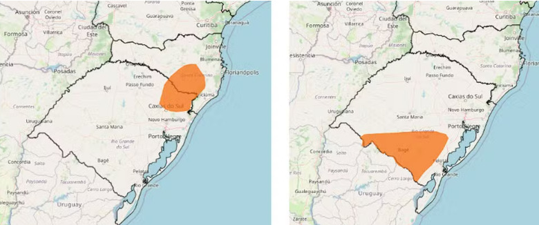 - Sul do Rio Grande do Sul e Serra Gaúcha, além da divisa entre Rio Grande do Sul e Santa Catarina;