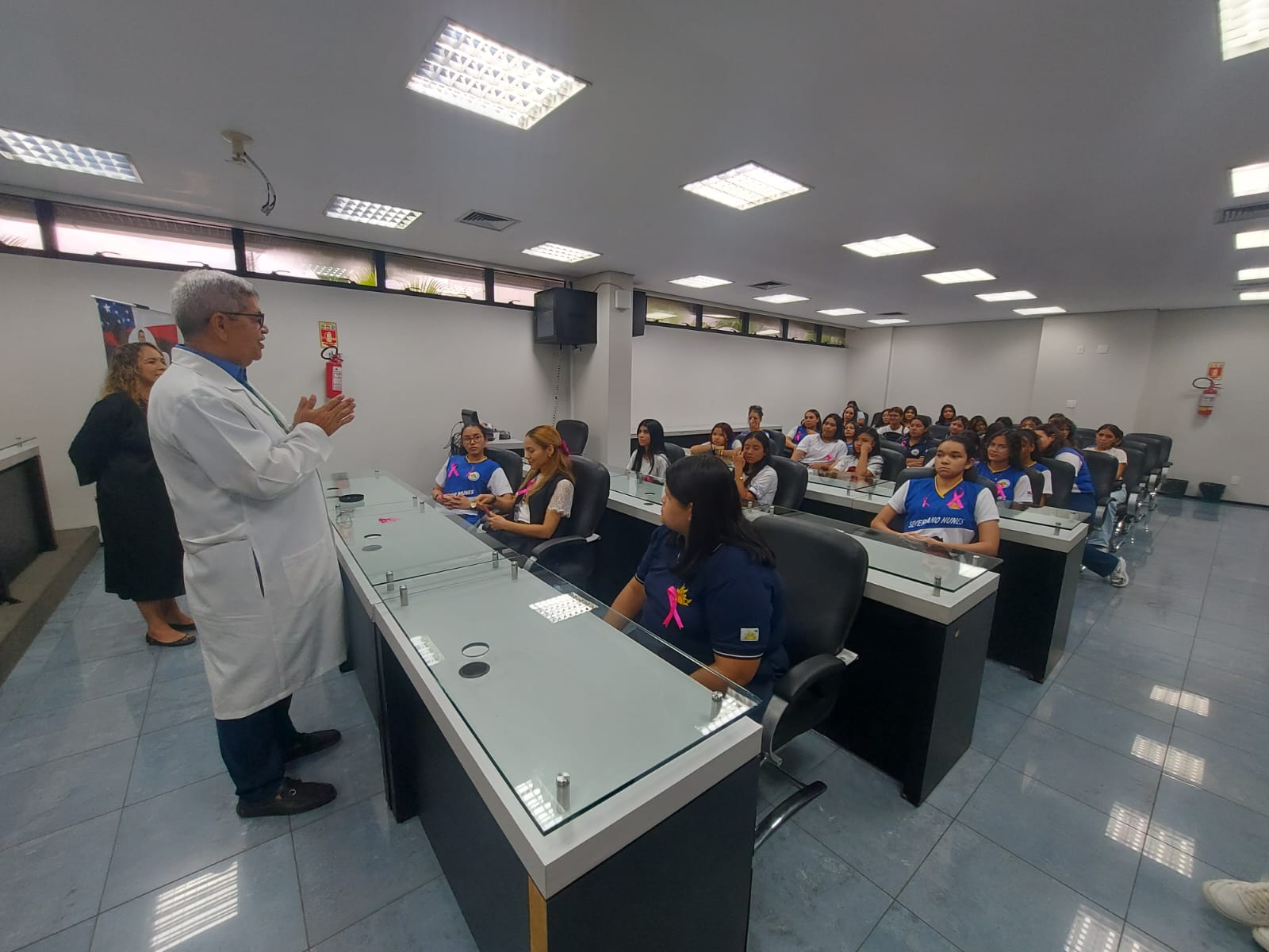 Estudantes do Ensino Médio da Escola Estadual Senador Manuel Severiano Nunes participaram, nesta terça-feira, 14/10, de uma ação educativa sobre saúde feminina promovida pela Frente Parlamentar de Cuidados e Prevenção à Depressão, Suicídio e Drogas (Fenapred), da Assembleia Legislativa do Estado do Amazonas (Aleam), em alusão à campanha Outubro Rosa.