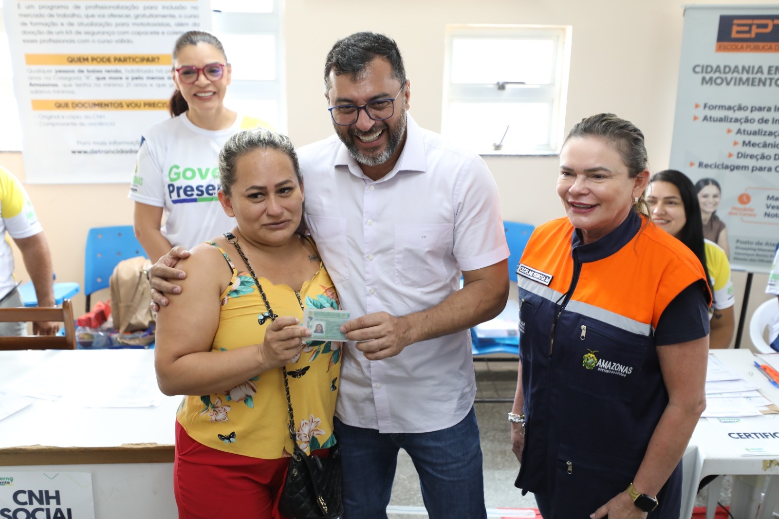 Um dos serviços disponíveis no Governo Presente é do Departamento Estadual de Trânsito do Amazonas (Detran-AM). O autônomo Elderson Vasconcelos, 42, aproveitou a oportunidade para retirar a Carteira Nacional de Habilitação (CNH) pelo projeto “CNH Social”."Graças a Deus o Governo ajudou bastante a gente. Essa (carteira) que eu peguei é a categoria A, mas estou tentando conseguir a B, e tenho certeza que vai dar tudo certo”, afirmou Elderson.
