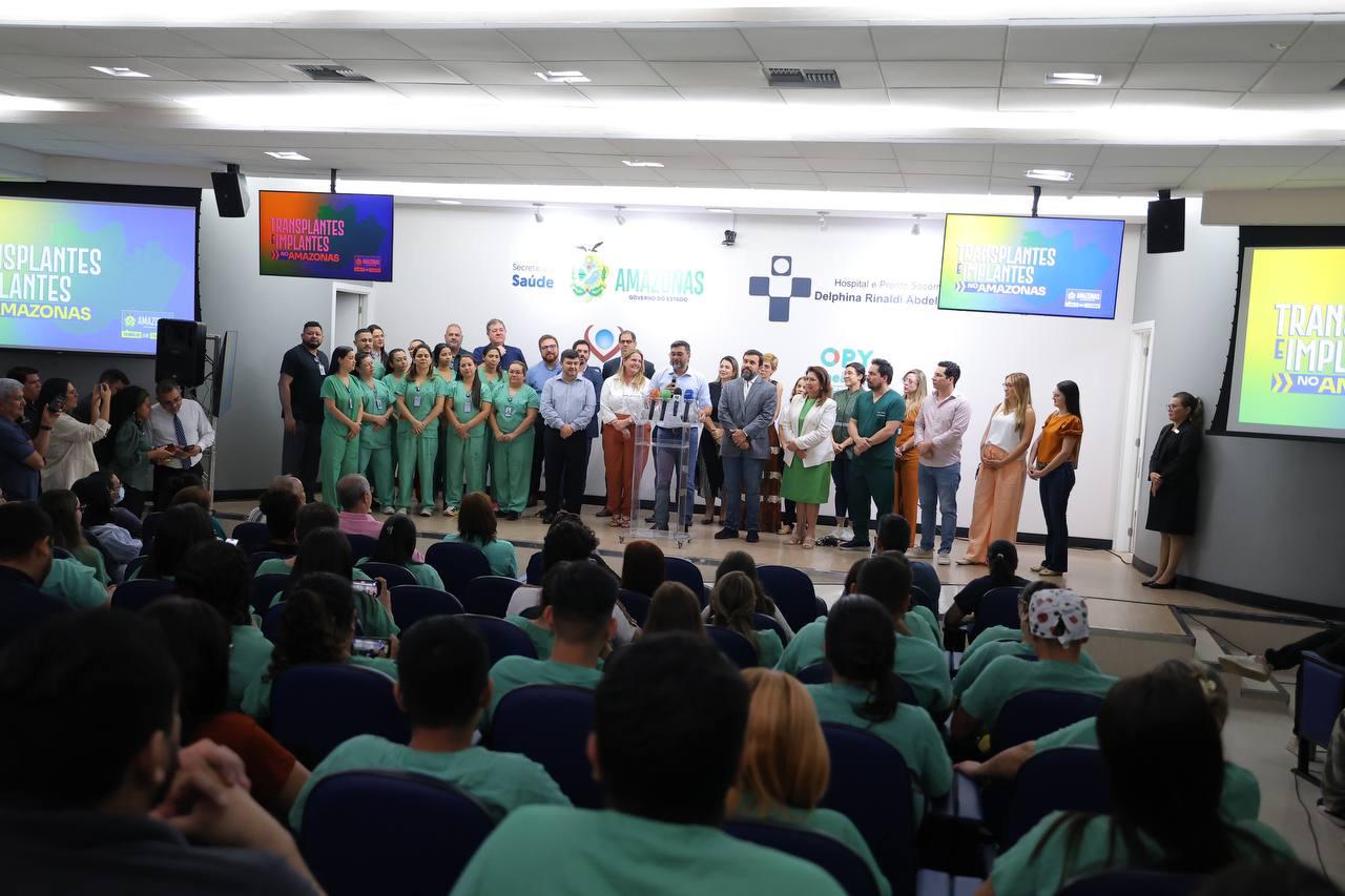 O governador Wilson Lima apresentou, na segunda-feira, 03/11, o balanço dos transplantes realizados no Amazonas, pelo Hospital Delphina Aziz, unidade referência da rede estadual para esse tipo de procedimento. A ação marcou oficialmente o início de uma nova fase da rede de alta complexidade do Estado, com a retomada dos transplantes de fígado após uma década e o reconhecimento do Delphina Aziz como o maior centro público de transplantes do Norte do país.