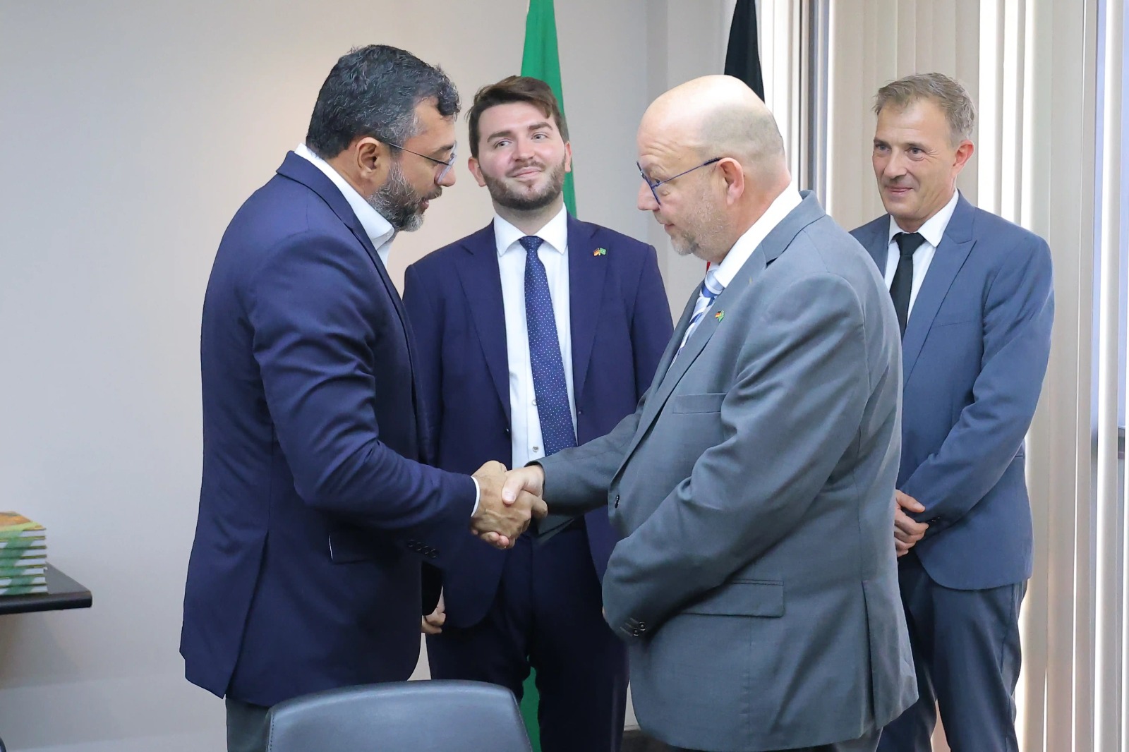 O governador Wilson Lima recebeu, nesta terça-feira, 29/10 , duas comitivas da Alemanha, uma chefiada pelo ministro da Saúde do país e outra formada por parlamentares, com o objetivo de apresentar os avanços em ações voltadas para economia sustentável do Amazonas. O protocolo reforça a parceria com o país europeu, um dos principais investidores para medidas de preservação do meio ambiente, incluindo o combate às queimadas na região amazônica.