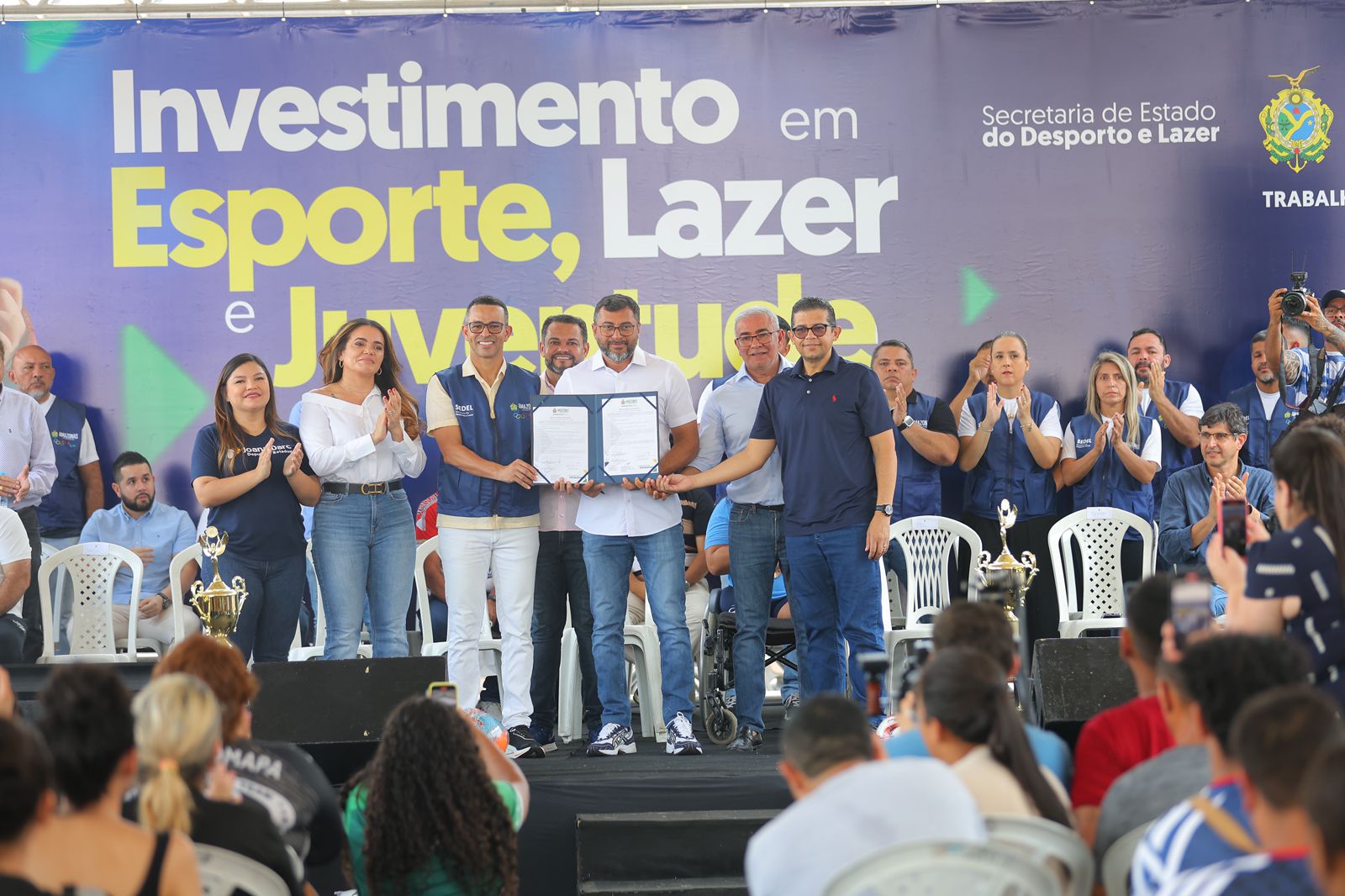 O governador Wilson Lima assinou, nesta sexta-feira, 27/09, a ordem de serviço para reforma do Estádio Carlos Zamith, no bairro Coroado, zona leste de Manaus. A manutenção do espaço, construído em 2014, faz parte das ações anunciadas pelo governador para a área desportiva, incluindo recursos para programas esportivos e em patrocínio para atletas e times de futebol profissional