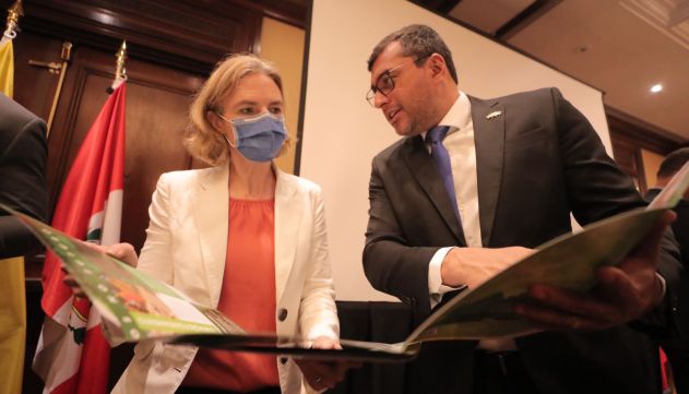 “O mundo hoje fala sobre a Amazônia. E se você perguntar para qualquer cidadão no planeta se ele conhece a Amazônia, ele responderia que sim; e se você perguntar para ele se tem interesse em preservar, diria que sim. Só que o grande problema é que as pessoas só conhecem a Amazônia pela vista aérea, pela copa das árvores, e não conhecem suas verdadeiras raízes, que é a sua população. É aí que reside o problema, porque não tem como você preservar a Amazônia, não tem como você proteger esse patrimônio da humanidade se você, primeiro, não proteger as pessoas”, alertou o governador Wilson Lima em seu discurso.