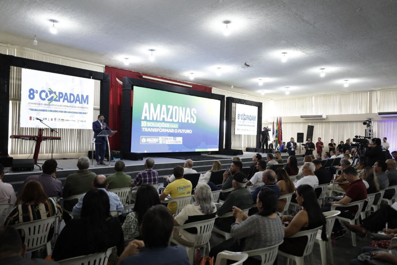 O governador Wilson Lima destacou, neste sábado, 27/09, durante a 8ª Conferência de Liderança Política da Assembleia de Deus (Colpadam), os avanços do Governo do Amazonas em áreas estratégicas que têm contribuído para a redução das desigualdades sociais no estado. O evento, realizado no Complexo Canaã, em Manaus, reuniu mais de 800 lideranças religiosas e políticas, entre prefeitos, vereadores, secretários municipais e conselheiros tutelares.