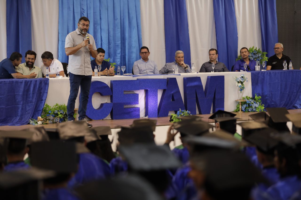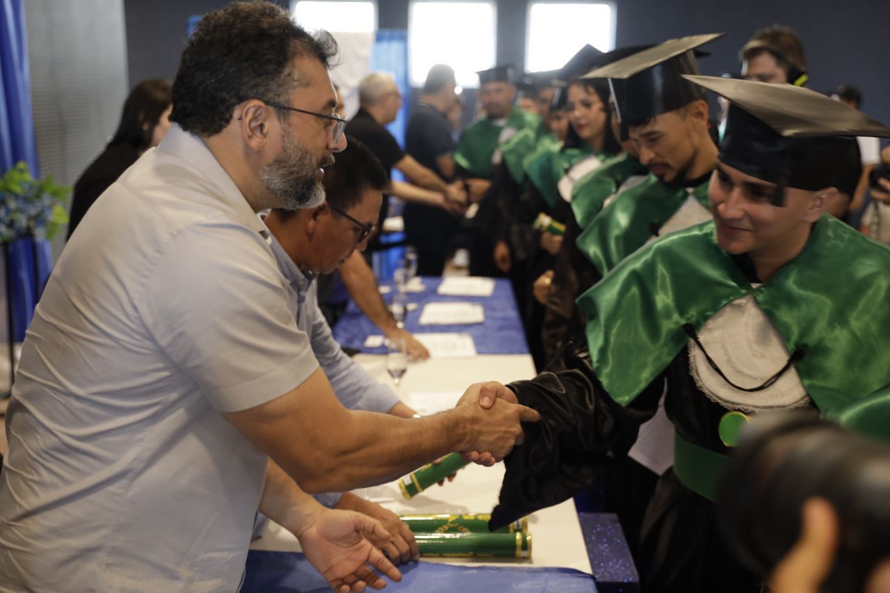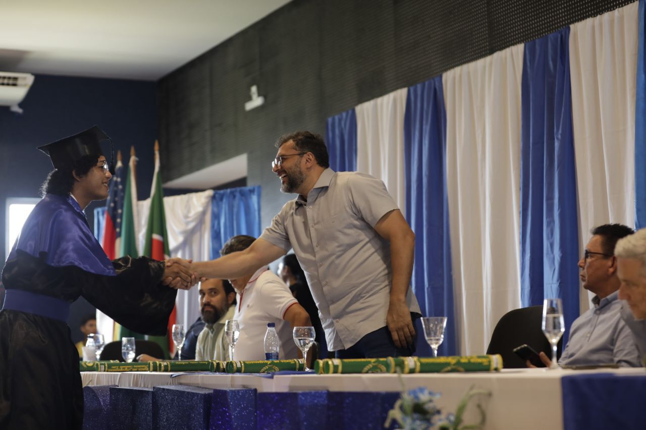O governador Wilson Lima destacou, na sexta-feira, 15/08, que a formação técnica de qualidade é um caminho direto para gerar emprego e renda no interior. A afirmação foi feita durante a formatura das primeiras turmas do Centro de Educação Tecnológica do Amazonas (Cetam) em Silves, fruto da parceria entre o Governo do Estado e a Eneva, que qualificou mais de 80 alunos em três cursos e já garantiu a contratação de parte dos novos profissionais para atuar no Complexo do Azulão.