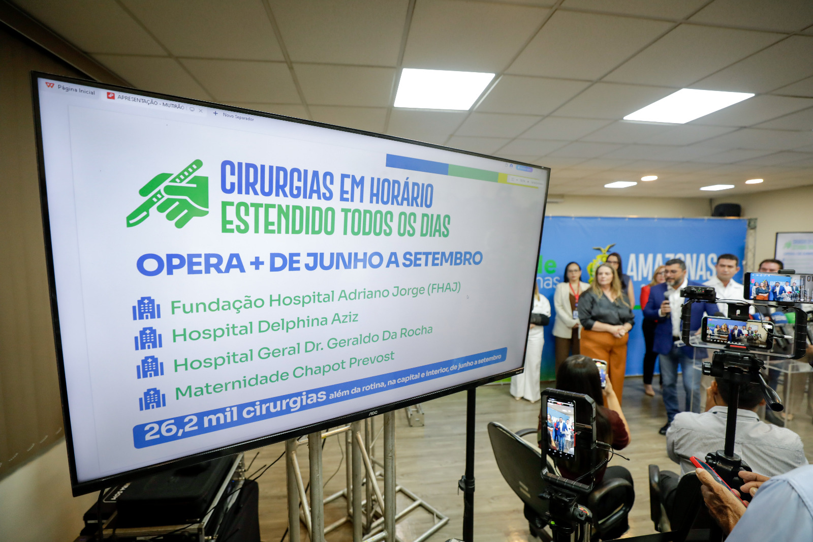 Na ocasião, participaram do evento o deputado estadual Dr. Gomes, a secretária de Saúde Nayara Maksoud, além de representantes da Fundação Hospital Adriano Jorge, Hospital Delphina Aziz, Hospital Geral Dr. Geraldo da Rocha e Maternidade Chapot Prevost, unidades que vêm executando o programa.De junho a setembro, foram realizadas 26,2 mil cirurgias adicionais além da rotina, em hospitais da capital e do interior. Hoje, as unidades conseguem realizar procedimentos até de madrugada e já não precisam transferir pacientes para outros hospitais, como ocorria no passado.