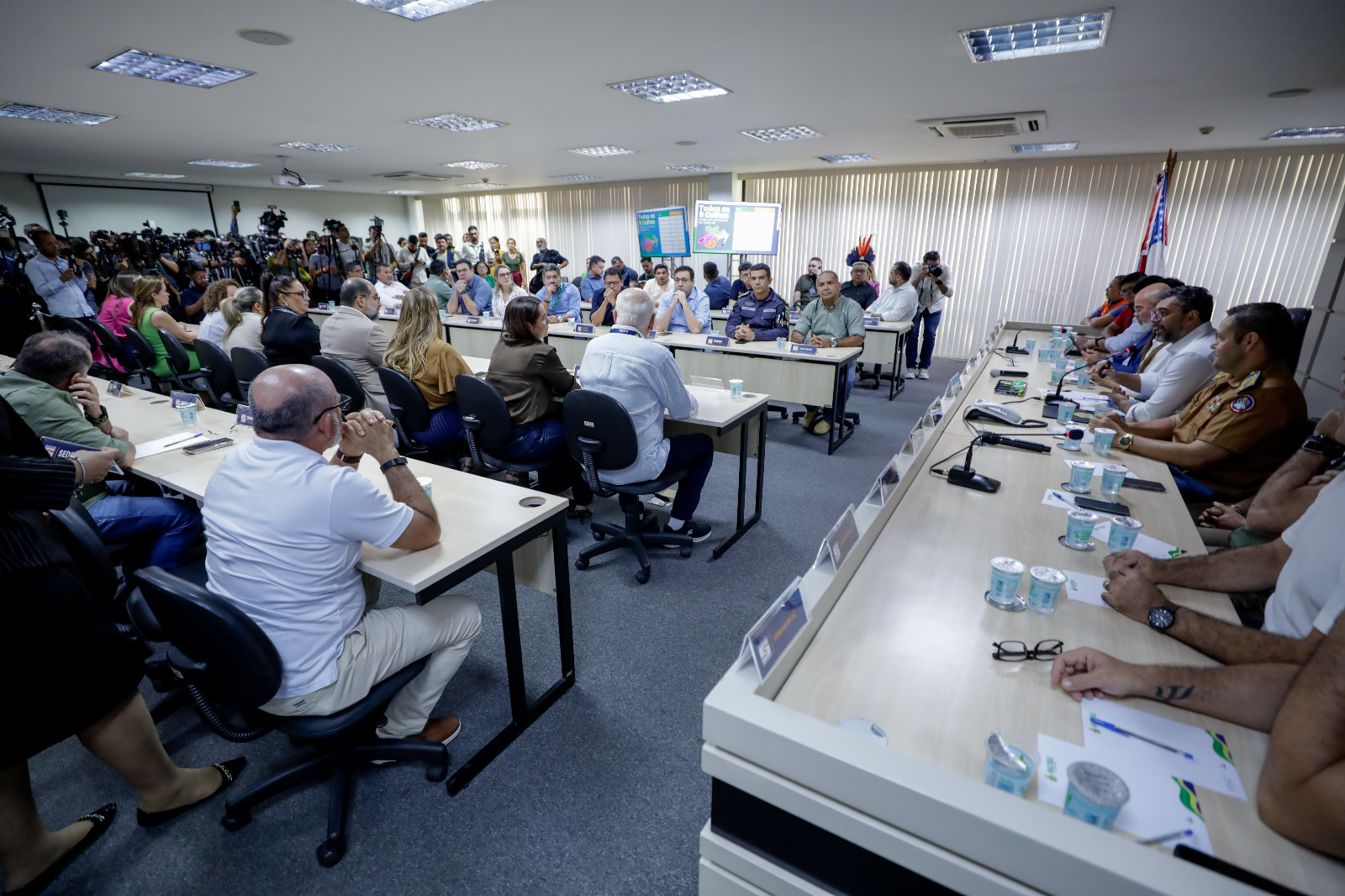 Durante o encontro, foi apresentado o panorama da estiagem em 2025. A previsão é que de 20 a 30 municípios sejam impactados, atingindo cerca de 120 mil famílias, aproximadamente 480 mil pessoas. Todas as nove calhas dos rios do estado já estão em processo de vazante. Segundo o Centro Gestor e Operacional do Sistema de Proteção da Amazônia (Censipam), entre setembro e novembro deve chover acima da normalidade no sudoeste do estado, enquanto as demais regiões terão índices dentro da normalidade. As temperaturas permanecem estáveis em todo o território.