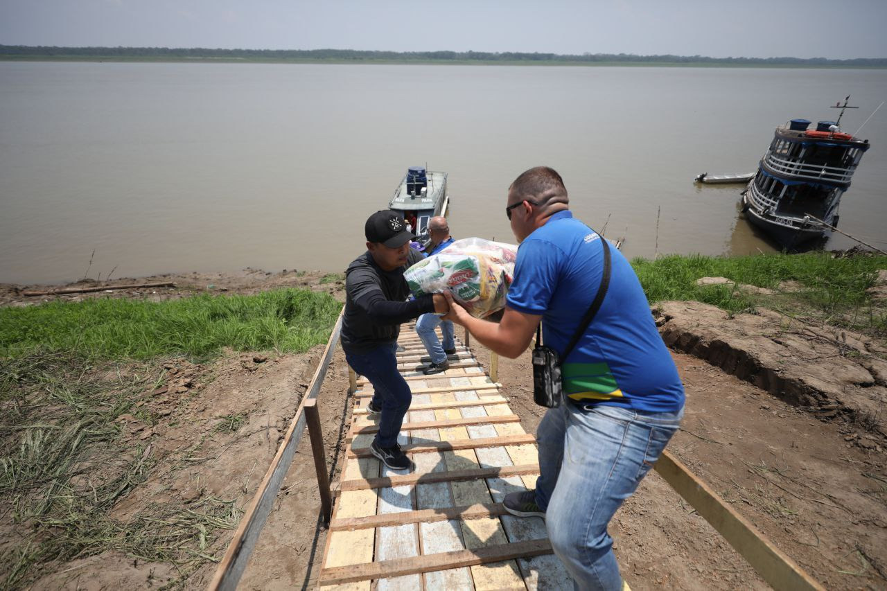 Ao todo, 7 mil cestas básicas foram entregues no Centro Educacional de Tempo Integral (Ceti) João Carlos Pereira dos Santos, em Tabatinga (a 1.108 quilômetros de Manaus). A ajuda humanitária será dividida para outros municípios da calha, como Benjamin Constant e Atalaia do Norte (a 1.121 e 1.138 quilômetros de Manaus, respectivamente).
