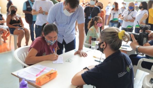 “Hoje eu já estive na zona leste, na zona norte, em pontos de entrega de cartão, uma movimentação muito grande. Às 4h da manhã já tinha gente na fila e, por isso, em alguns locais, abrimos postos antes das 8h para atender essa demanda. Até o meio-dia, nos nove pontos de Manaus, esperamos entregar cerca de 5 mil cartões e até o fim do dia 10 mil. Somente aqui no Centro Cultural Povos da Amazônia, hoje já entregamos 570 cartões”, disse o governador, durante entrega no Centro Cultural Povos da Amazônia.